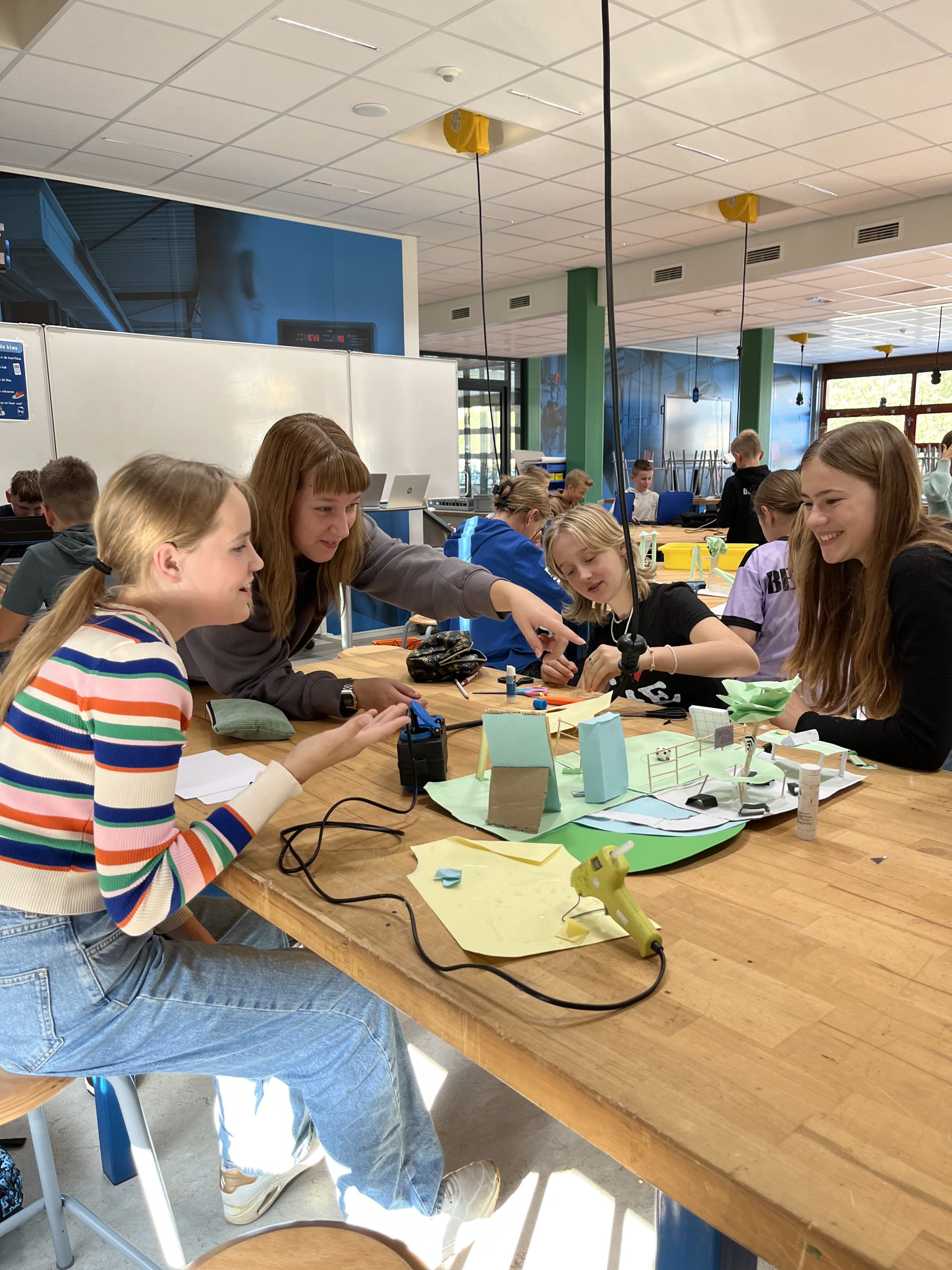Momenteel geeft Anne het vak Bèta Challenge Programma (BCP) en het keuzevak Maritiem en Techniek (MaT) aan klas 1 en 2. ‘Ik vind het ontzettend leuk om leerlingen te helpen en te begeleiden in het maken van iets. Zo zijn we nu bijvoorbeeld met BCP bezig met het ontwikkelen van een speelparadijs, en één groepje maakt een boomhuttenbasis. Dit hebben ze eerst op schaal gemaakt, met papier en karton. Vervolgens vroegen ze of ze deze boomhuttenbasis mochten nabouwen in Minecraft, zodat je er ook virtueel doorheen kan. Dat zijn voor mij de mooie kanten van het (techniek) onderwijs: creativiteit en initiatieven van leerlingen stimuleren, en samen trots zijn op het eindproduct.’
